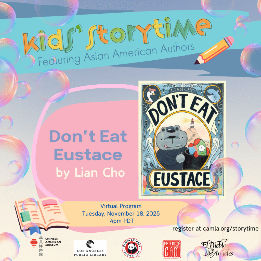Join the Chinese American Museum and Ms Rita from the Los Angeles Public Library’s Chinatown branch for this month’s Kids’ Storytime on Tuesday, November 18, at 4pm PST. Ms Rita will be reading Don’t Eat Eustace by Lian Cho.